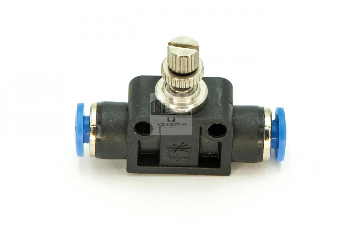 SCF – модель фитинга (трубка-регулятор-трубка): прямой фитинг-соединитель с нажимным цанговым соединением с двух сторон и регулятором.
