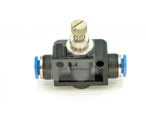SCF – модель фитинга (трубка-регулятор-трубка): прямой фитинг-соединитель с нажимным цанговым соединением с двух сторон и регулятором.