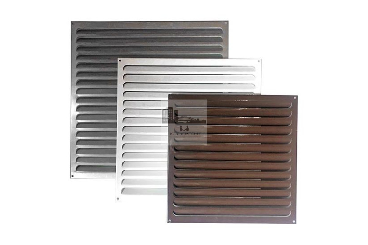 Воздухозаборная решетка металлическая накладная размером x * x мм. для внутреннего или наружного монтажа. Изготовлена из оцинкованной стали, окрашенная в белый или коричневый цвет