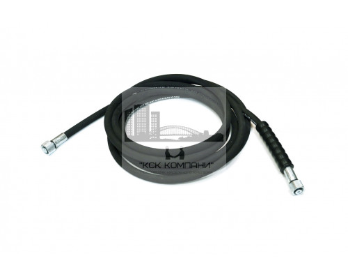 Рукав с двух сторон обжат фитингами DKF-W (washclean kercher) c метрической резьбой М22х1.5 и металлической гайкой для соединения с моечным аппаратом. С одной стороны имеет защиту от изгиба для присоединения к моечному пистолету.