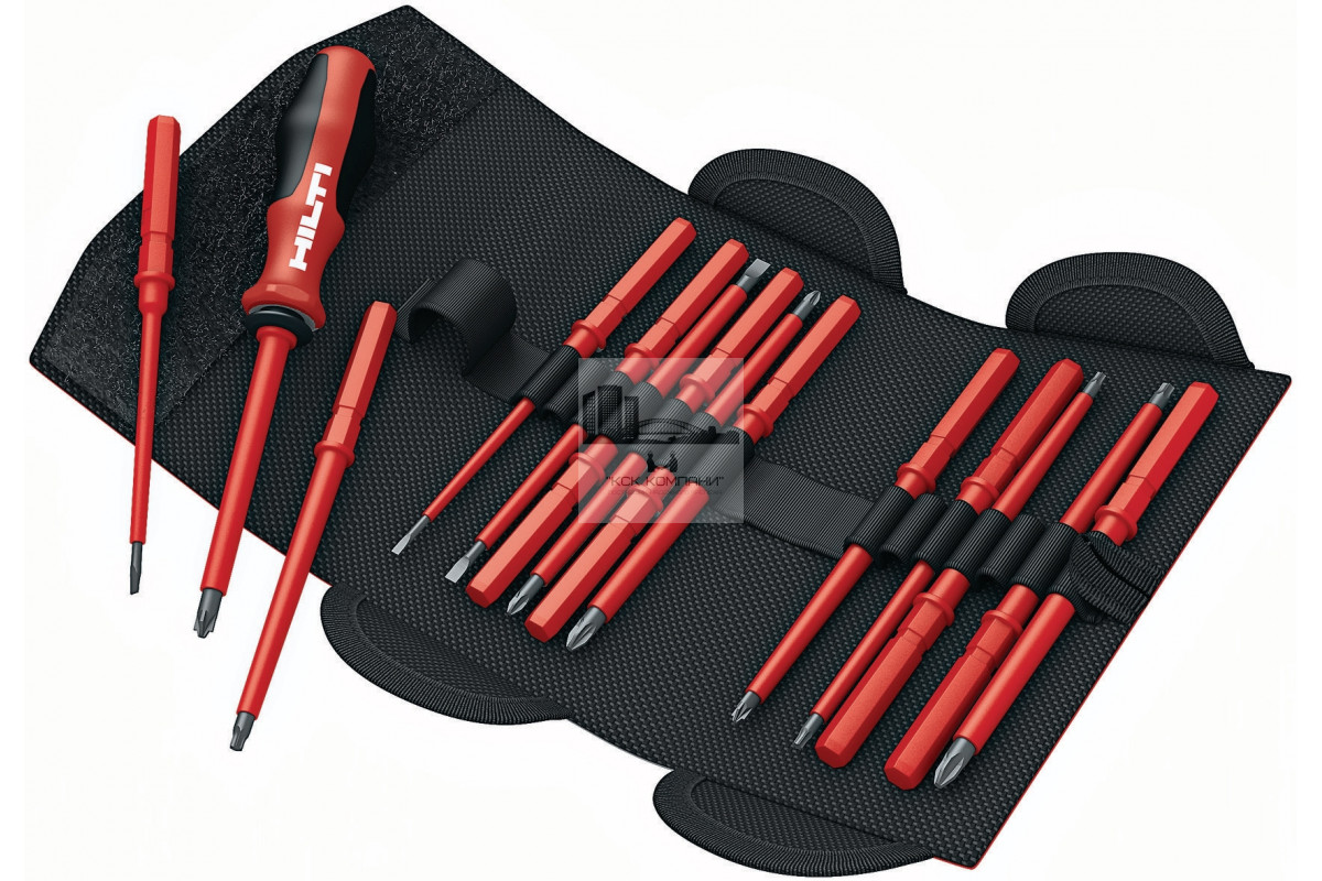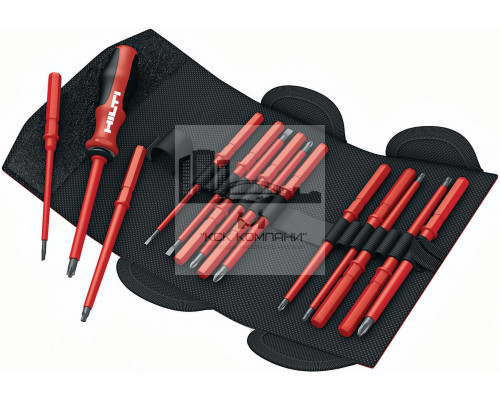 Набор изолированных отверток, сертифицированных ассоциацией VDE, с 14 сменными насадками и с надежной сумкой