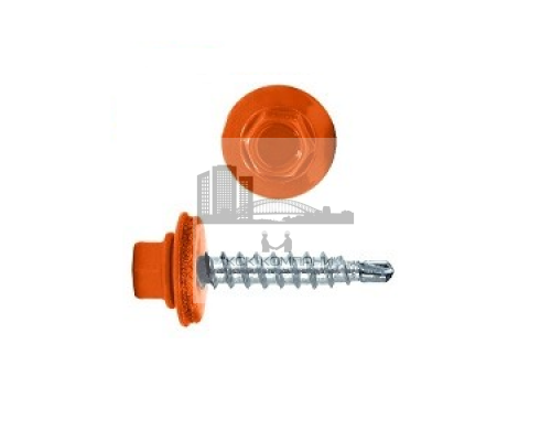 Саморез шуруп окрашенный кровельный RAL 2004 нужен для прижимания к основанию и герметизации стыка. Крепежный элемент имеет частый шаг резьбы, что увеличивает прочность соединения. Саморез кровельный оранжевый RAL 2004 имеет продуманную геометрию бура, который позволяет с легкостью просверлить любой тип деревянного и пластикового основания, а так же тонколистового металла.