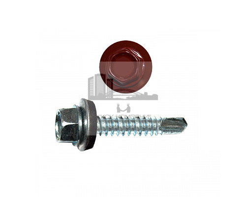 Саморез шуруп окрашенный кровельный RAL 3011 нужен для прижимания к основанию и герметизации стыка. Крепежный элемент имеет частый шаг резьбы, что увеличивает прочность соединения. Саморез кровельный коричнево-красный RAL 3011 имеет продуманную геометрию бура, который позволяет с легкостью просверлить любой тип деревянного и пластикового основания, а так же тонколистового металла.
