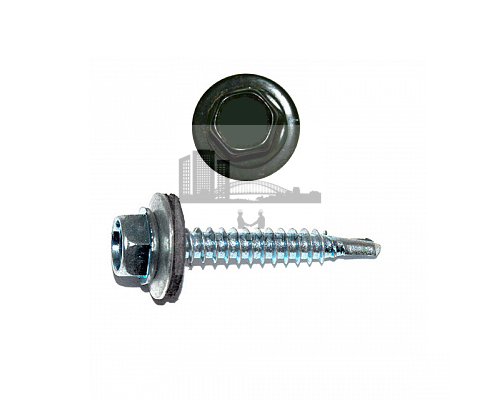 Для установки профилированного листа к деревянной обрешётке используется окрашенный саморез кровельный RAL 6020. Винтовой элемент оснащен EPDM уплотнителем, что гарантирует плотную фиксации кровли к основанию и минимизирует риск попадания влаги. Прокладка также невосприимчива к резким изменениям температур.