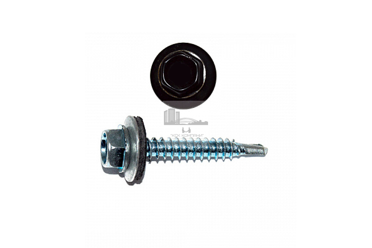 Для установки профилированного листа к деревянной обрешётке используется окрашенный саморез кровельный RAL 9005. Винтовой элемент оснащен EPDM уплотнителем, что гарантирует плотную фиксации кровли к основанию и минимизирует риск попадания влаги. Прокладка также невосприимчива к резким изменениям температур.