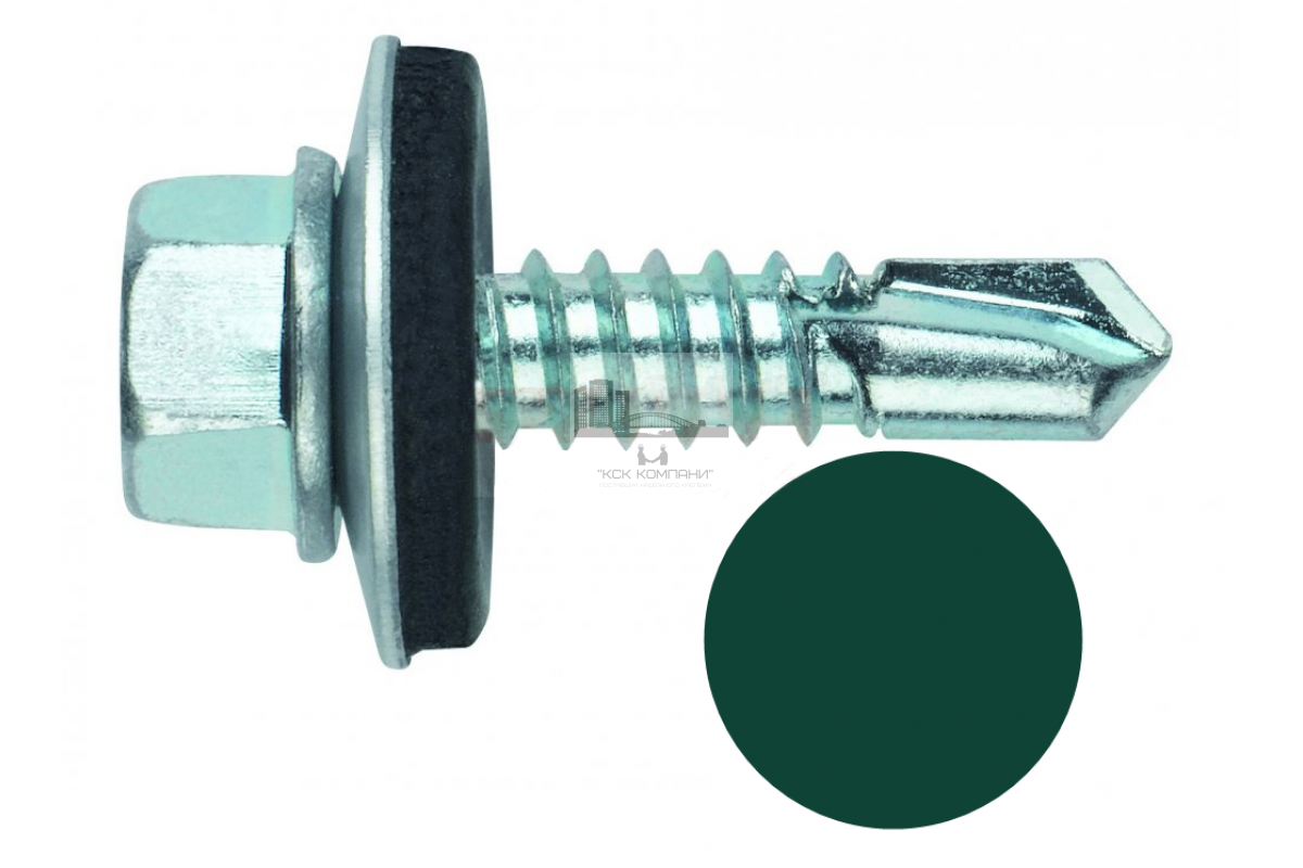 Особенности: Конструктивной состоит из стержня, оканчивающегося сверлом, имеет шестигранную шляпку с шайбой и резиновой прокладкой. Метиз окрашен в цвет RAL6005 — это "темно-зеленый". Шайба увеличивает площадь контакта крепежа с присоединяемой поверхностью, не позволяет деформировать материал во время затяжки. Резиновая прокладка способствует высокой герметичности соединения, защищает от проникновения влаги и пыли. |
