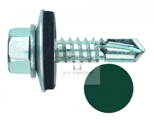 Особенности: Конструктивной состоит из стержня, оканчивающегося сверлом, имеет шестигранную шляпку с шайбой и резиновой прокладкой. Метиз окрашен в цвет RAL6005 — это "темно-зеленый". Шайба увеличивает площадь контакта крепежа с присоединяемой поверхностью, не позволяет деформировать материал во время затяжки. Резиновая прокладка способствует высокой герметичности соединения, защищает от проникновения влаги и пыли. |