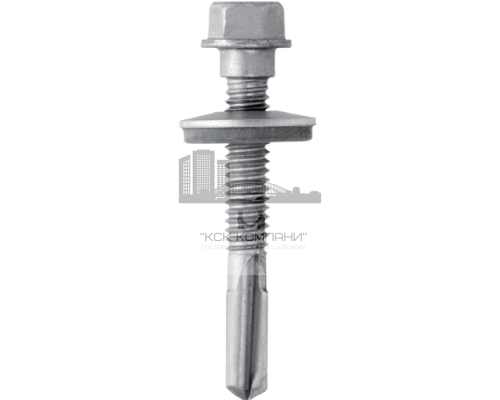 Особенности: Конструктивно изделие состоит из стержня, с удлиненным сверлом и резьбой, а также шестигранной головки с прессшайбой и уплотняющей прокладкой. Такая форма сверла позволяет прикреплять материалы к основаниям с толщиной до 12,5 мм. Прессшайба обеспечивает сохранение поверхности материала без деформации во время затяжки метиза. Изделие окрашено в цвет RAL7004 — это "серый". |