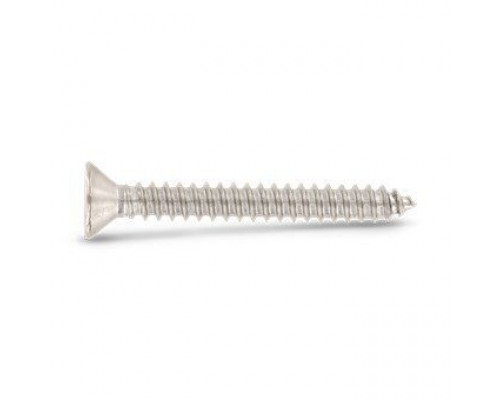 Особенности: Саморез изготовлен из нержавеющей стали в виде стержня с нарезной резьбой, острым концом и потайной шляпкой с углублением для закручивания отверткой или шуруповертом. При закручивании крепеж полностью утопает в соединенном изделии, поверхность его не портится и крепеж не заметен. |