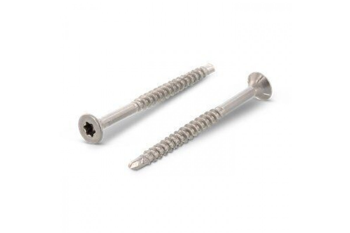 | Характеристики: Сверлящий конец;Фрезерующие ребра под головкой;Звездообразное углубление под ключ TX. - высококачественная аустенитная нержавеющая сталь А2 для долговечного наружного монтажа- не требует засверливания для большинства пород древесины ( для твердых пород рекомендуется проводить пробное закручивание)- благодаря сверлящему концу снимается напряжение с дерева и предотвращается образование трещин- стабилизированное тело, а также четкая геометрия резьбы практически исключает обламывание шурупов- гарантируется низкий момент затяжки при вкручивании и, соответственно, малые затраты сил- шесть фрезерованных ребер жесткости под головкой обеспечивают легкое и аккуратное погружение шурупа Super-Drill- внутренняя шестиугольная звездочка обеспечивает легкое и надежное вкручивание от насаживания до погружения без "соскакивания" инструмента. |