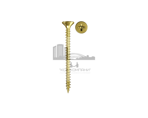 Саморез универсальный желтый цинк с потайной головкой и шлицем PZ со средним шагом резьбы и острым наконечником.