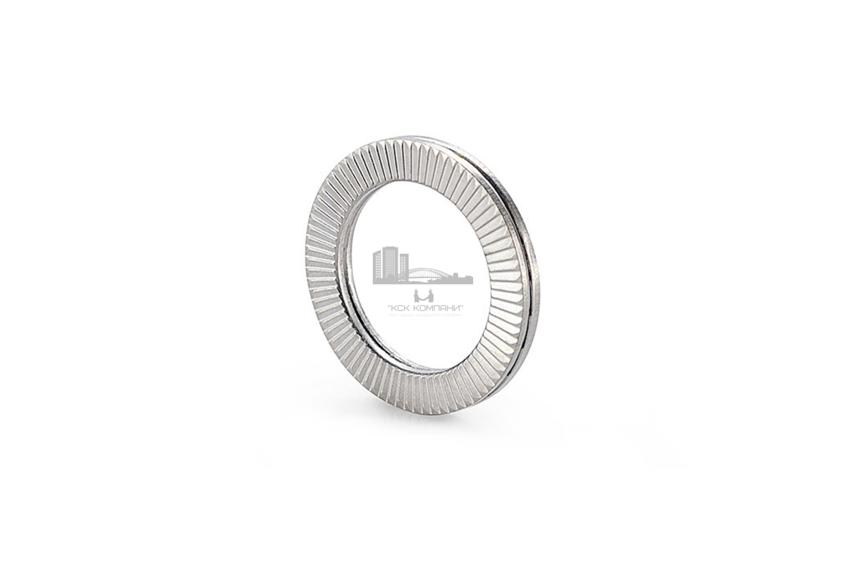 Шайба nord lock DIN 25201 оснащена радиальными рёбрами, что увеличивает давление на поверхность основания. Сила затяжки обеспечивается квадратными косыми выступами. Использование шайбы nord lock DIN 25201 особенно актуально в ситуациях, когда присутствует риск ослабления метиза.