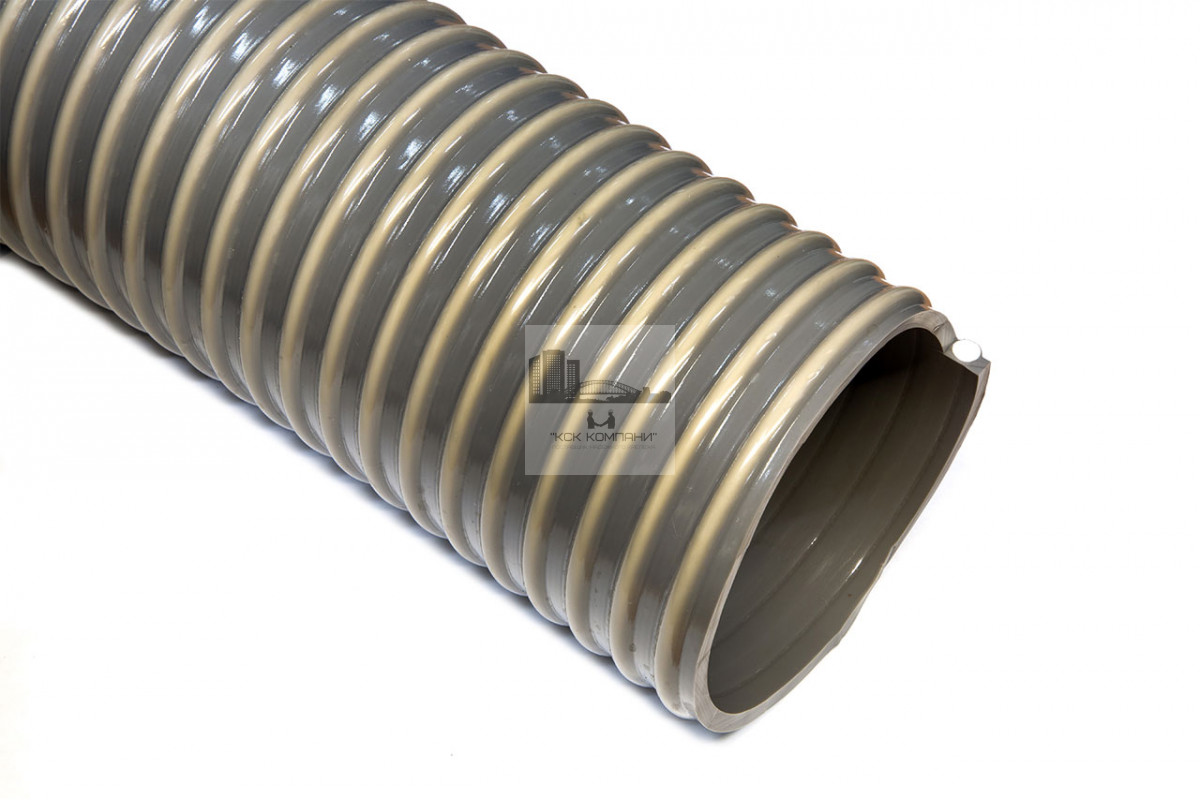 Описание: состоит из цилиндрической оболочки из пластифицированного поливинил хлорида с замоноличенным внутри ее прутком из непластифицированного поливинилхлорида. Внутренняя поверхность шланга гладкая, внешняя - волнистая. Цвет: непрозрачная серая стенка, белая спираль. Изготовлены методом последовательной экструзии.