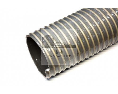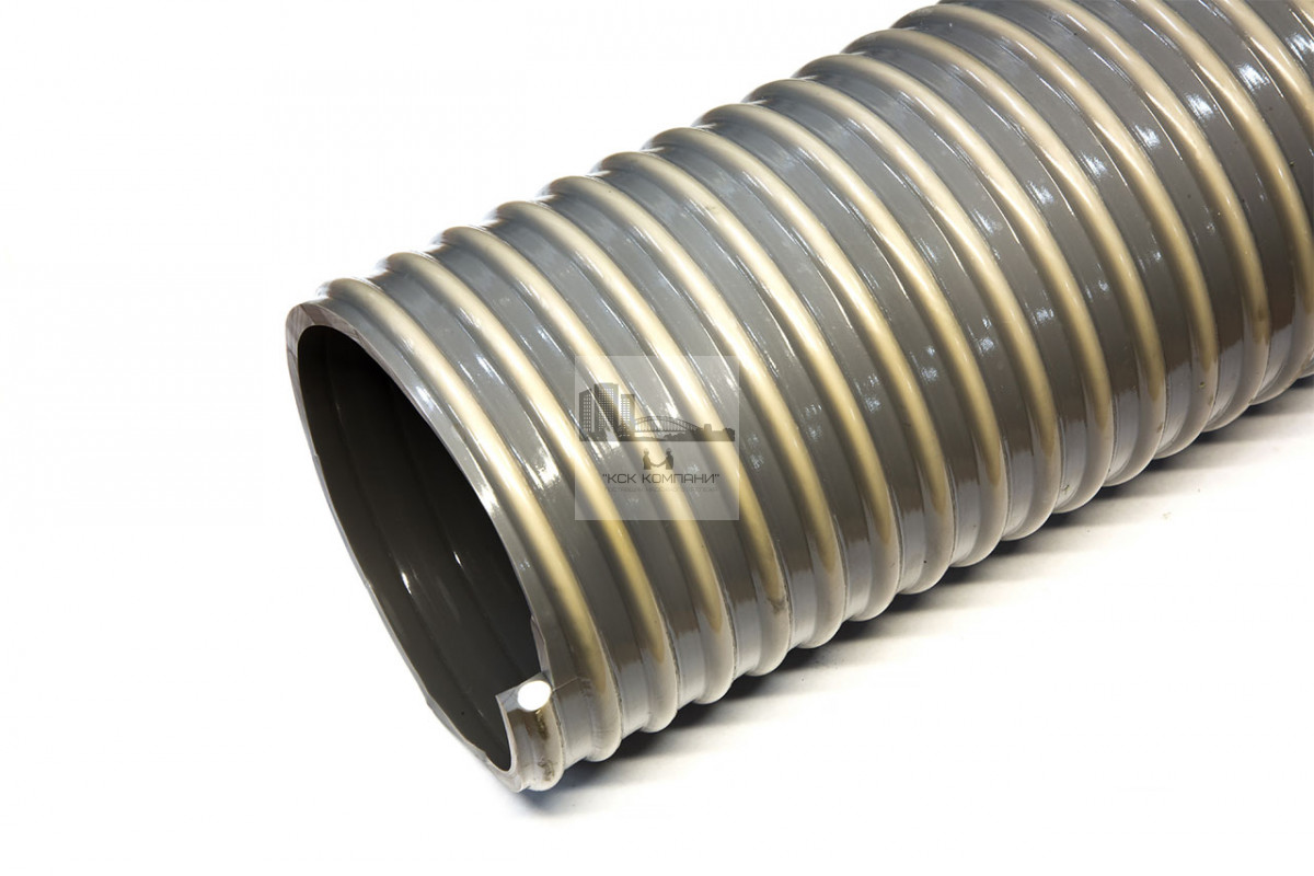 Описание: состоит из цилиндрической оболочки из пластифицированного поливинил хлорида с замоноличенным внутри ее прутком из непластифицированного поливинилхлорида. Внутренняя поверхность шланга гладкая, внешняя - волнистая. Цвет: непрозрачная серая стенка, белая спираль. Изготовлены методом последовательной экструзии.