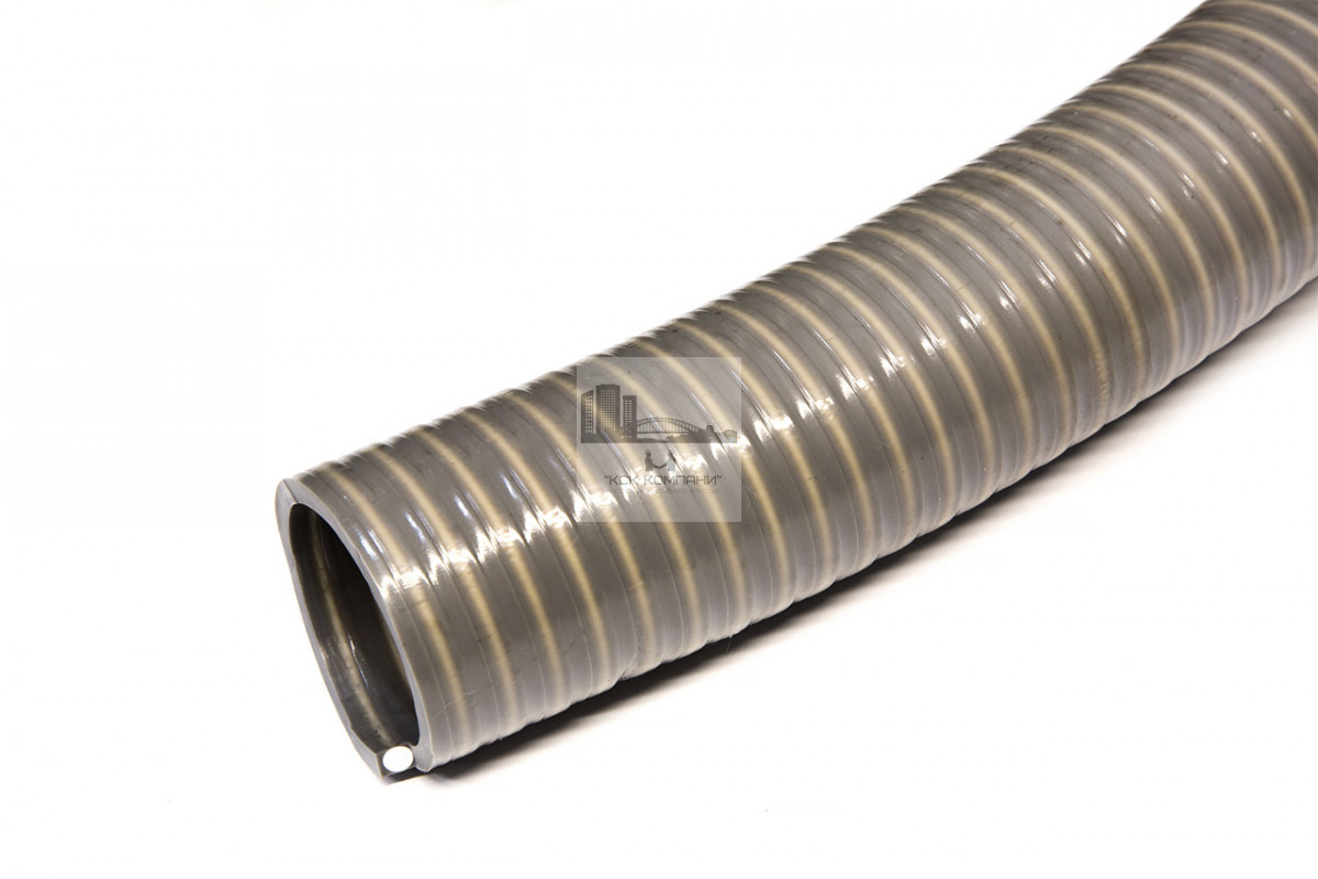 Описание: состоит из цилиндрической оболочки из пластифицированного поливинил хлорида с замоноличенным внутри ее прутком из непластифицированного поливинилхлорида. Внутренняя поверхность шланга гладкая, внешняя - волнистая. Цвет: непрозрачная серая стенка, белая спираль. Изготовлены методом последовательной экструзии.