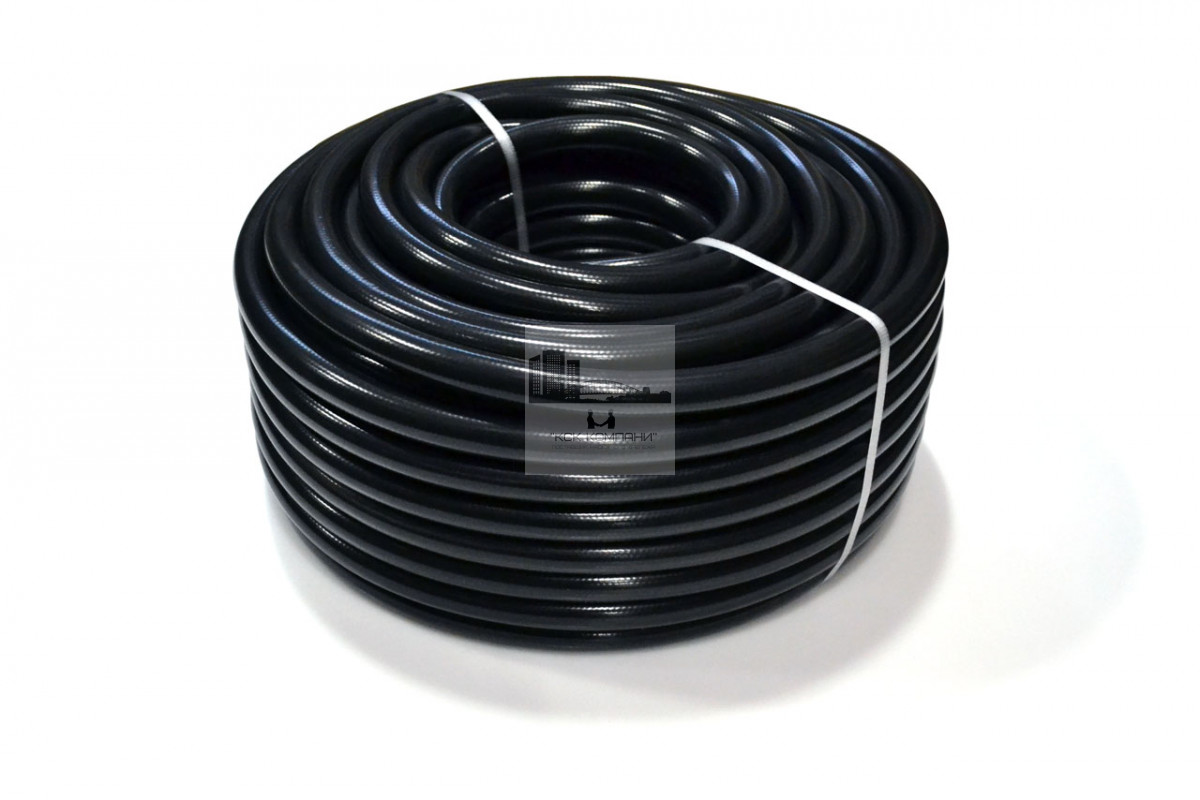 Описание: внутренний слой - черный ПВХ, средний слой - усиленная оплетка из полиэстера, внешний слой - черный ПВХ с белой полосой по всей длине шланга.