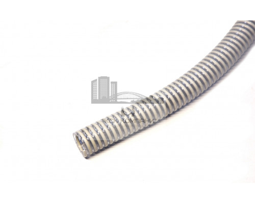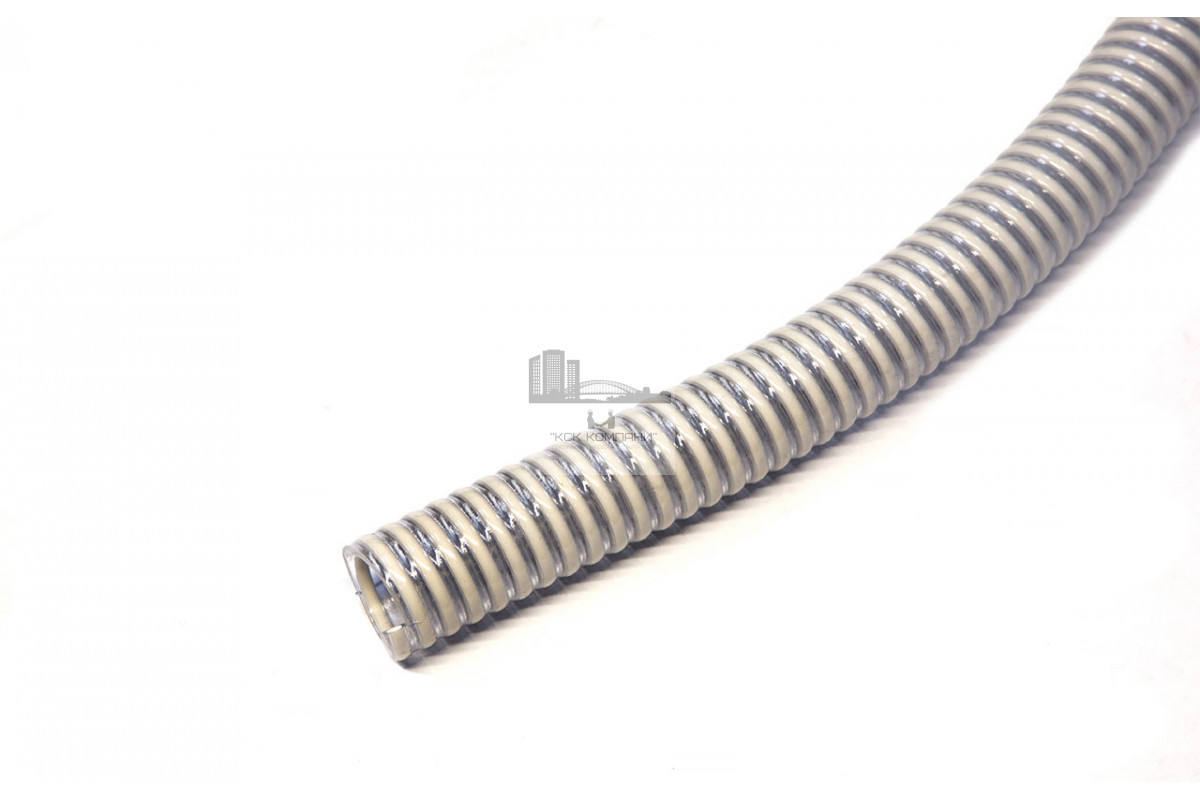 Описание: состоит из цилиндрической оболочки из пластифицированного поливинилхлорида с замоноличенным внутри ее прутком из непластифицированного поливинилхлорида. Внутренняя поверхность шланга гладкая, внешняя - волнистая. Цвет: прозрачная стенка, серая спираль. Изготовлены методом последовательной экструзии.