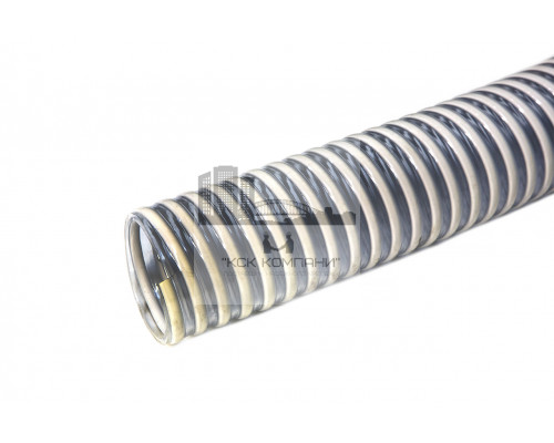 Описание: состоит из цилиндрической оболочки из пластифицированного поливинилхлорида с замоноличенным внутри ее прутком из непластифицированного поливинилхлорида. Внутренняя поверхность шланга гладкая, внешняя - волнистая. Цвет: прозрачная стенка, серая спираль. Изготовлены методом последовательной экструзии.