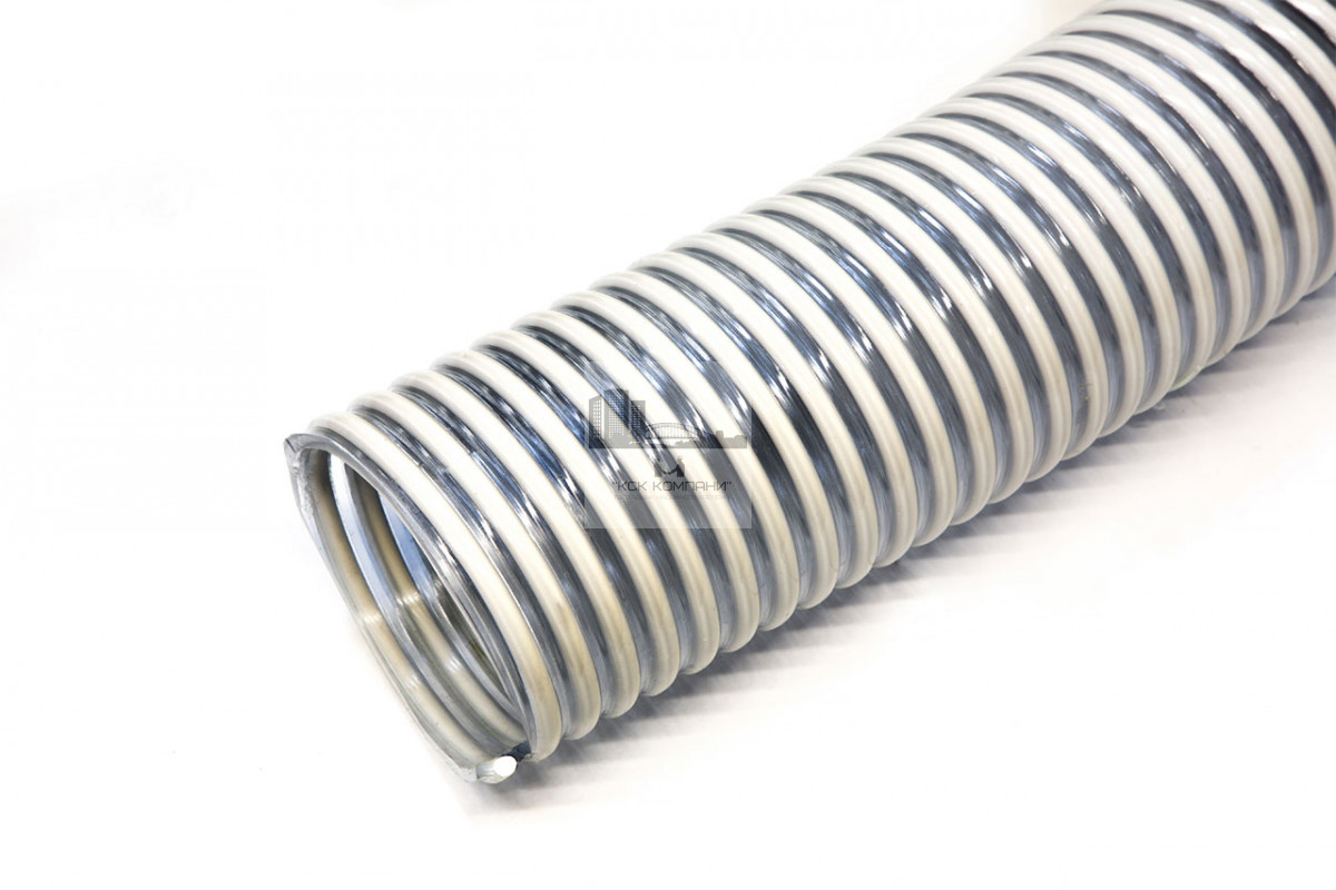 Описание: состоит из цилиндрической оболочки из пластифицированного поливинилхлорида с замоноличенным внутри ее прутком из непластифицированного поливинилхлорида. Внутренняя поверхность шланга гладкая, внешняя - волнистая. Цвет: прозрачная стенка, серая спираль. Изготовлены методом последовательной экструзии.