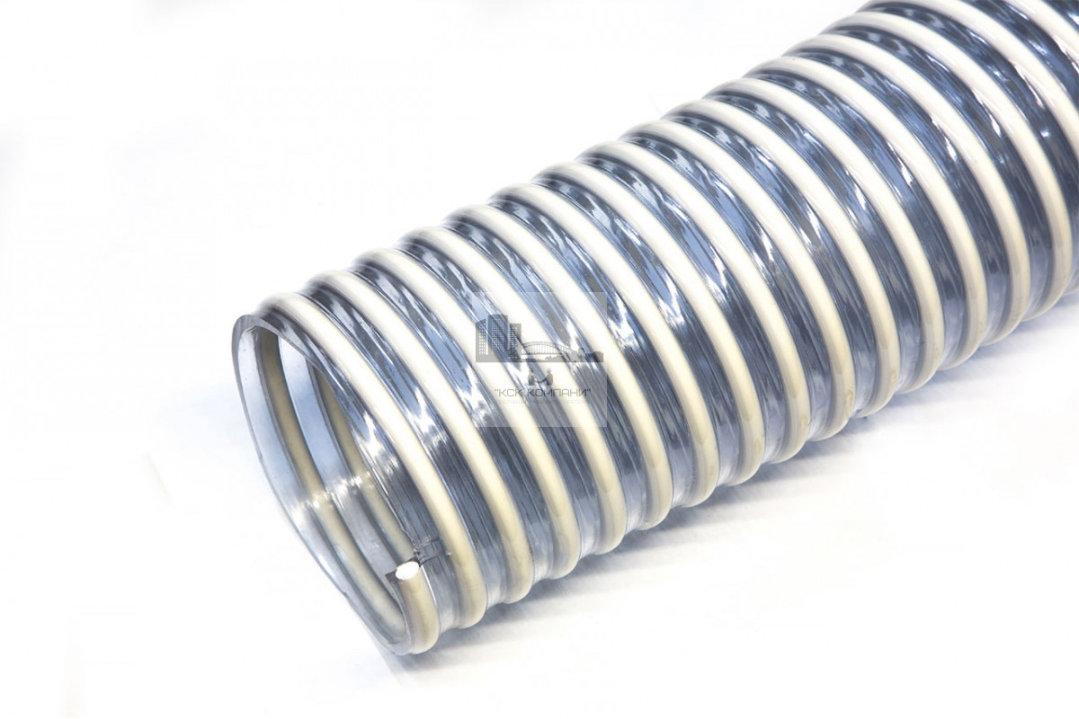 Описание: состоит из цилиндрической оболочки из пластифицированного поливинилхлорида с замоноличенным внутри ее прутком из непластифицированного поливинилхлорида. Внутренняя поверхность шланга гладкая, внешняя - волнистая. Цвет: прозрачная стенка, серая спираль. Изготовлены методом последовательной экструзии.