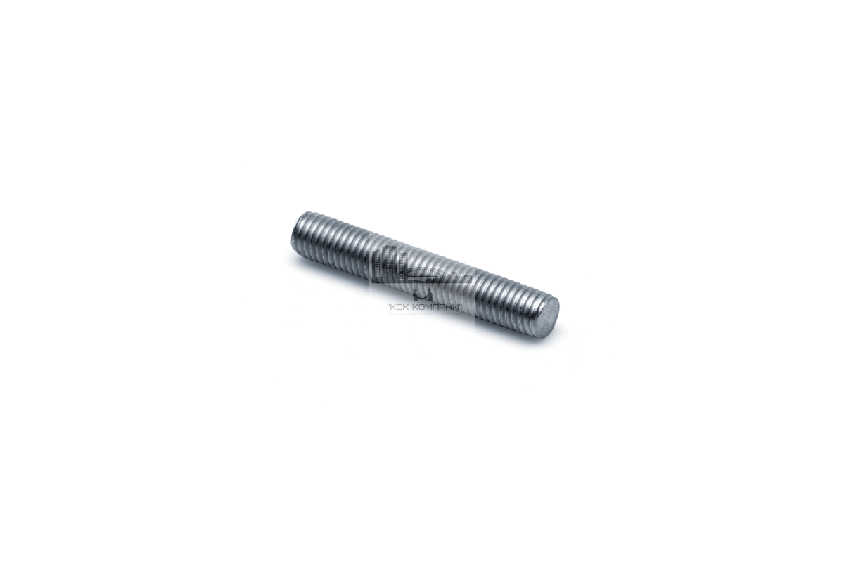 Резьбовая размерная шпилька фиксированной длины от 25 до 200 мм, класса прочности 5,8 и с полем допуска 6g, с метрической резьбой по всей длине стержня. Тип исполнения А, без фаски, оцинкованная, покрытие 01, толщиной 6 мкм. Изготавливается из стали марки Ст20. DIN 976-1.