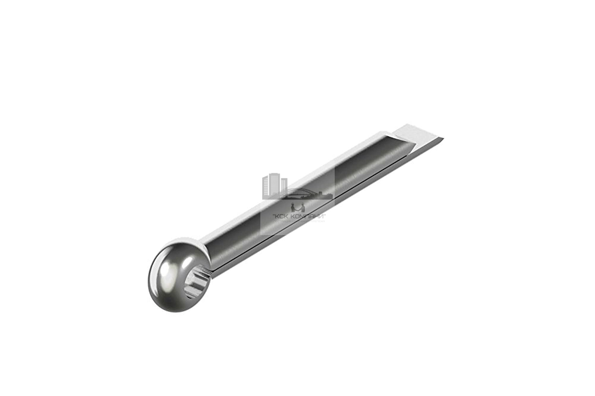 Для предотвращения смещения деталей используется шплинт разводной DIN 94. Крепежный элемент монтируется в заранее подготовленное гнездо, препятствуя самопроизвольному раскручиванию. Шплинт прямой DIN 94 прост в монтаже и демонтаже, предназначен для применения в ненапряженных узлах.