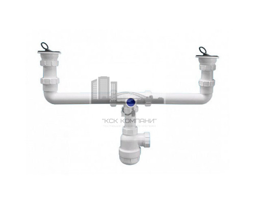 Сифон бутылочный (1 1/2'х40мм) для 2-х раковин с выпусками (70мм нержавеющие решетки), пробками; выход компрессионный Ду=40мм
