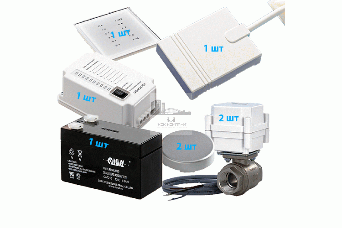 Защита от протечек воды GIDROLOCK- это система предотвращения протечек, которую можно устанавливать в квартирах и загородных домах, общественных и административных зданиях, промышленных и складских помещениях, котельных и локальных тепловых пунктах, станциях водоочистки, в системах водоснабжения и отопления - везде, где возможна утечка воды. Состоит из трех основных элементов: - датчики протечки воды. Устанавливаются в местах вероятного ее появления: под ванной, мойкой, рядом с унитазом или раковиной, под стиральной и посудомоечной машиной, батареей или котлом отопления, бойлером и т.д. Система может контролировать до 20 помещений, где существует риск появления воды. Благодаря небольшим размерам (высота датчика воды всего 8 мм) датчики протечки воды можно разместить в любых местах. - блок управления. Предназначен для формирования напряжения питания всех подключенных к нему датчиков, управления шаровыми электроприводами и выдачи звукового оповещения об аварии. - шаровые электроприводы. Предназначены для перекрытия водоснабжения (отопления) в случае возникновения протечки. Комплектация: ШЭП 1/2" GIDROLOCK ULTIMATE BUGATTI : 2 шт Блок управления GIDROLOCK PREMIUM с крепежом : 1 шт Радио датчик протечки воды WSR : 2 шт Блок радиоприемника Gidrolock-Radio : 1 шт Аккумулятор 12 вольт 1,3 ампер*час : 1 шт