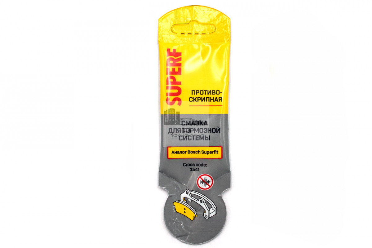 Смазка SUPER F ТУ 0254-038-45540231-2012 на минеральной основе, загущенной бентонитом. Противоскрипная, высокотемпературная, антикоррозионная, без порошковых наполнителей. Предназначена для нерабочих поверхностей тормозных колодок и посадочных мест. Не совместима с резиновыми деталями.