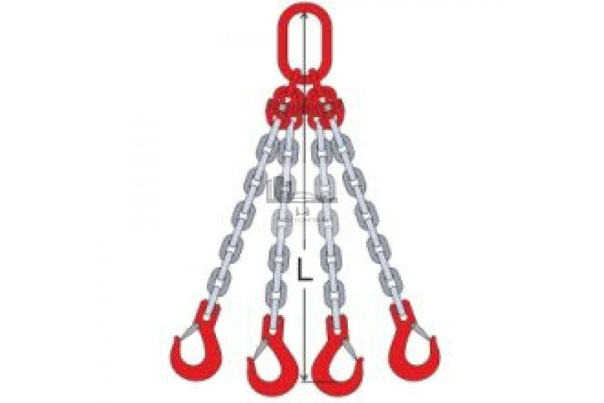 - Элементы стропа: 4 ветви цепи, звено ОВ, 4 цепных крюка;