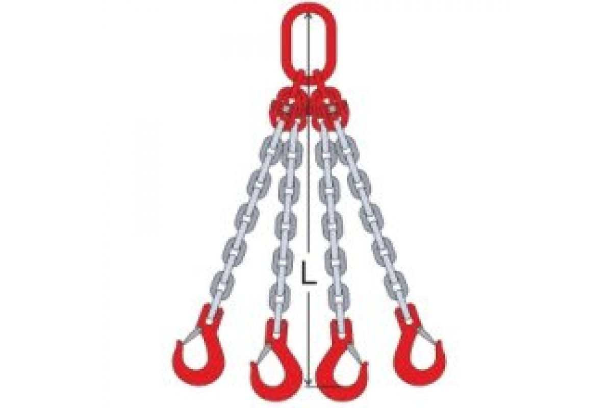 - Элементы стропа: 4 ветви цепи, звено ОВ, 4 цепных крюка-укоротителя;
