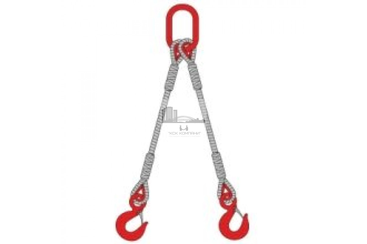- Элементы стропа: 2 ветви каната ВК с коушами, звено ОВ, 2 чалочных крюка;
