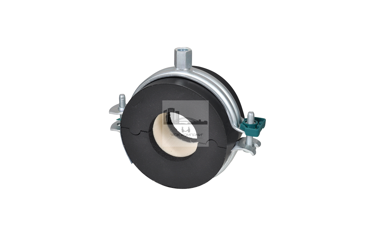 - материал: хомут из стали; термоизоляцонный блок: сердцевина из полиизоцианурата (PIR), боковины из синтетического каучука, паронепроницаемая оболочка из поливинилхлорида (PVC) черного цвета