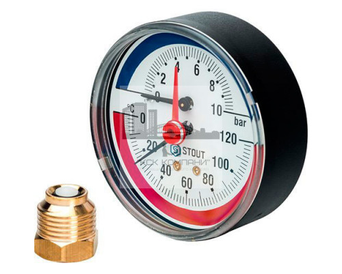 Описание - Термоманометр аксиальный 80 мм 10 бар Stout