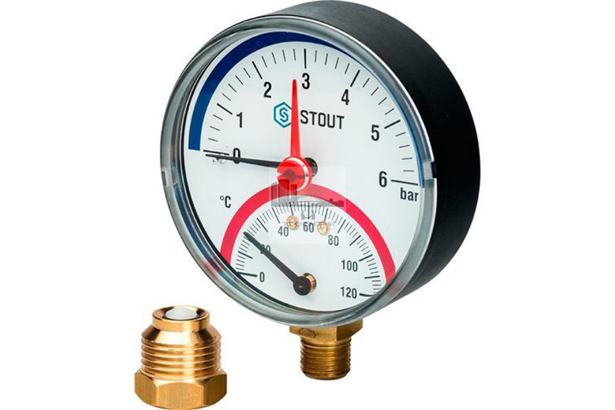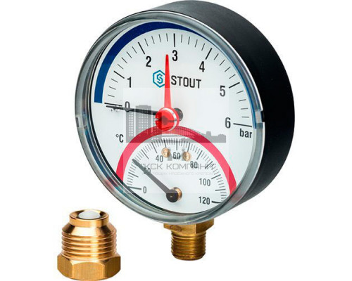 Описание - Термоманометр радиальный 80 мм 6 бар Stout