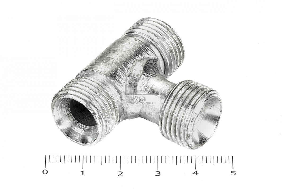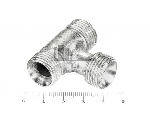 Тройник проходной с наружной резьбой для соединения рукавов высокого давления между собой, а также для присоединения РВД к насосам, гидроцилиндрам, гидроусилителям по внутреннему конусу. Предназначены для разделения непрерывного рабочего потока на несколько разнонаправленных ветвей.