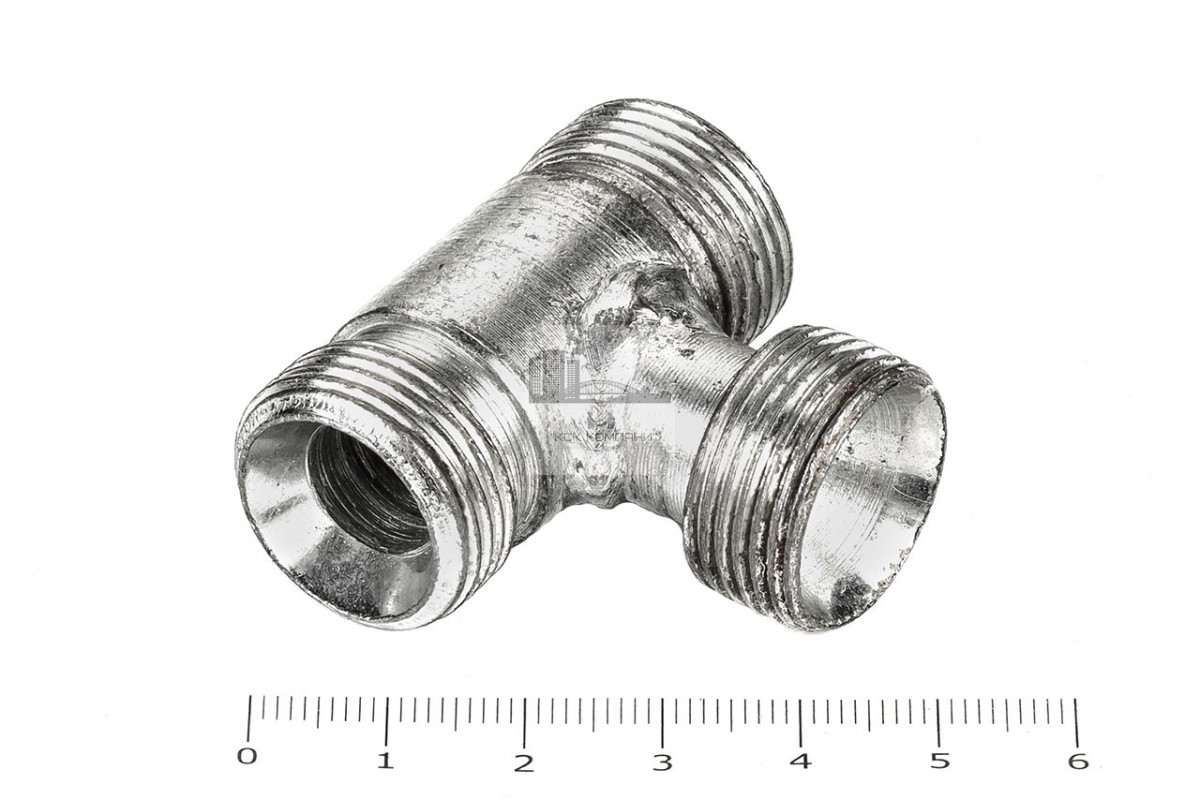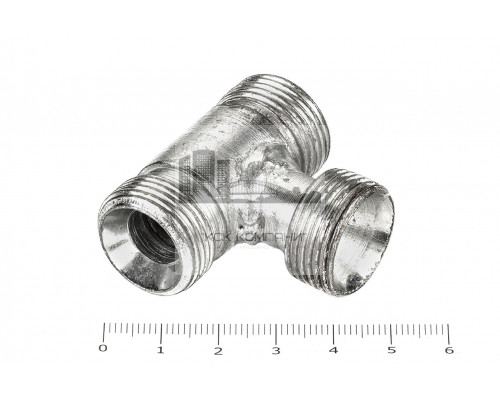 Тройник проходной с наружной резьбой для соединения рукавов высокого давления между собой, а также для присоединения РВД к насосам, гидроцилиндрам, гидроусилителям по внутреннему конусу. Предназначены для разделения непрерывного рабочего потока на несколько разнонаправленных ветвей.