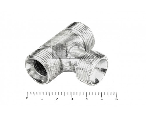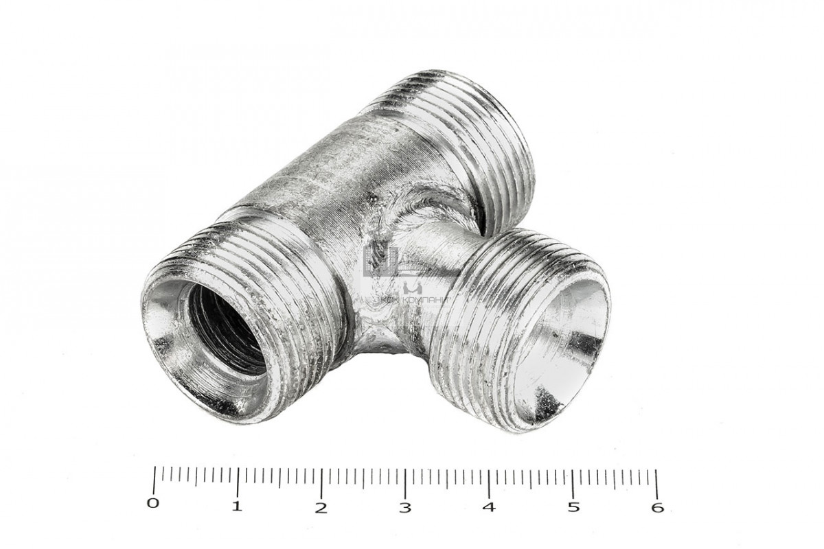 Тройник проходной с наружной резьбой для соединения рукавов высокого давления между собой, а также для присоединения РВД к насосам, гидроцилиндрам, гидроусилителям по внутреннему конусу. Предназначены для разделения непрерывного рабочего потока на несколько разнонаправленных ветвей.