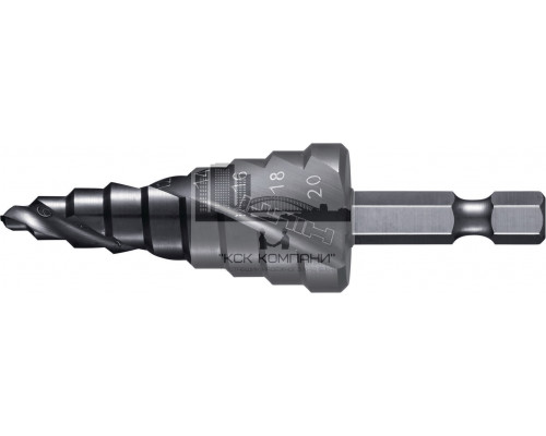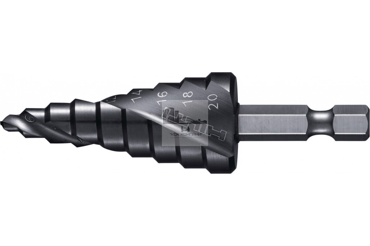 Ударное ступенчатое сверло с шестигранным хвостовиком и улучшенным покрытием для максимальной скорости сверления отверстий в металле с использованием ударного или обычного шуруповерта