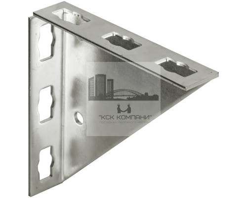 Описание и особенности: В качестве материала для консоли используют оцинковку с толщиной 4 мм. Форма детали – прямоугольный треугольник с длиной катетов 200 мм, которые отбортованы под углом 90°. Ширина полученных полок составляет 41. На консоли есть отверстия под крепеж. Это три отверстия диаметром 12.5 мм для анкеров; а в отбортованных полках – 3-и фигурных паза в каждой для болтов с гайкой PFCN. Благодаря горячей оцинковке изделие превосходно противостоит коррозии и имеет длительный ресурс работы. |