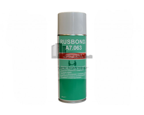 RusBond А7.063 - универсальный очиститель на основе растворителя, не содержащий хлорфторуглеродов. Применяется для очистки и обезжиривания поверхностей перед применением клеёв, герметиков, мастик. Эффективно и бережно очищает любую обрабатываемую поверхность (металл, пластик, резина, стекло, ЛКП, винил, ткань, дерево, керамика и др.) от жировых, масляных загрязнений, остатков смазочных материалов, пыли, дорожной грязи и т.п. Продукт также используется для очистки и обезжиривания узлов машин и механизмов во время работ по техническому обслуживанию.