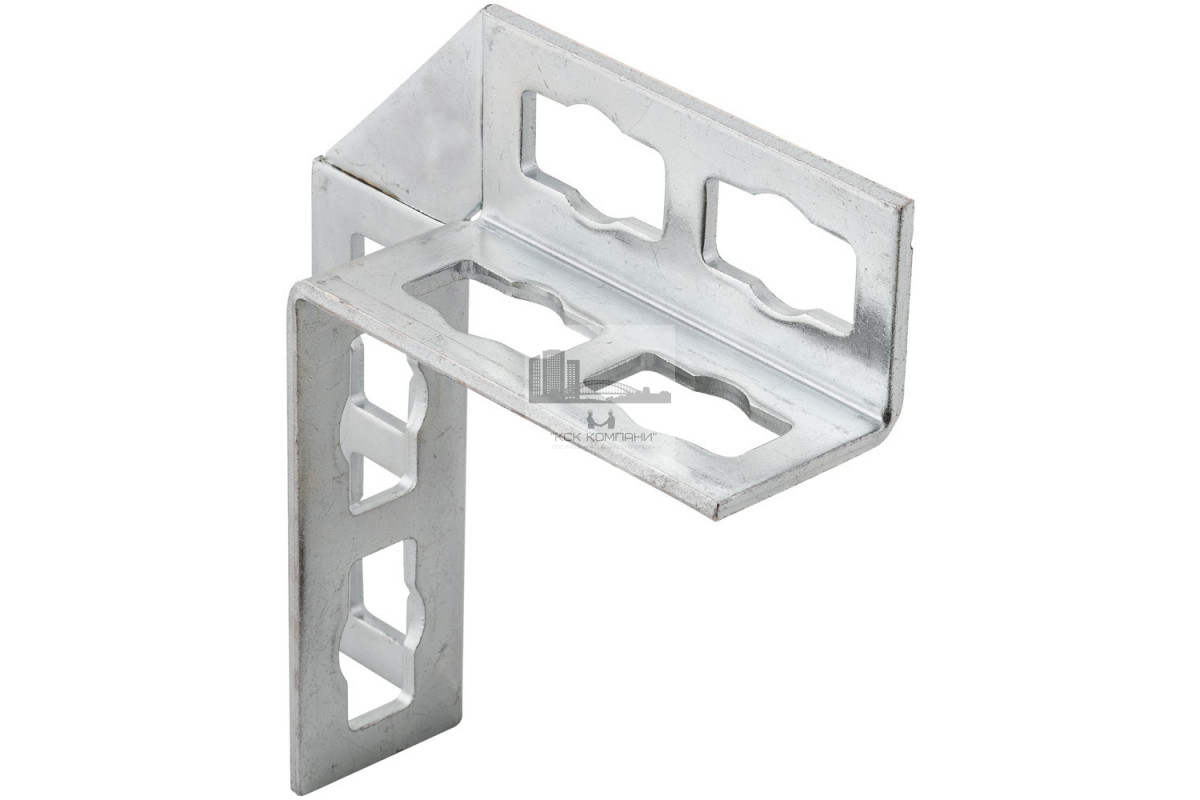 Описание и особенности: Уголок изготавливают из стали, оцинкованной горячим способом, толщина которой составляет 4 мм. Этот параметр увеличивает жесткость и несущую способность полученного соединения. Конфигурация изделия – это отрезок угольника 41x41 мм, который раскроен под углом 90° на две одинаковые половины длиной 150. Конструкция уголка усилена приваркой кницы из листового металла. Во всех четырех полках уголка выполнено по два фигурных паза, используемых для крепления шин при помощи болта в комплекте с монтажной гайкой PFCN. |