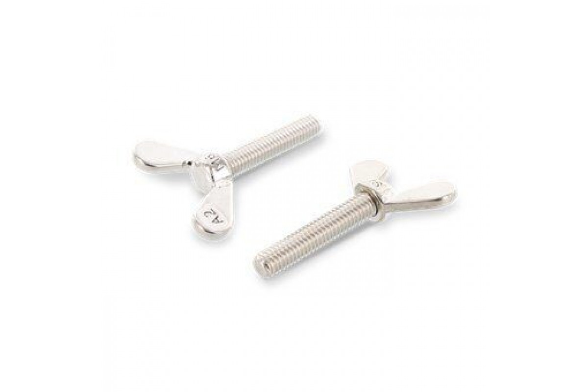 | Описание и особенности: Винт DIN 316 имеет метрическую резьбу по всей длине стержня и головку с двумя лепестками в виде барашка, при помощи которых его удобно закручивать или раскручивать вручную, без помощи инструмента. Немецкая форма головки имеет более округлые формы, в отличие от американской формы. |