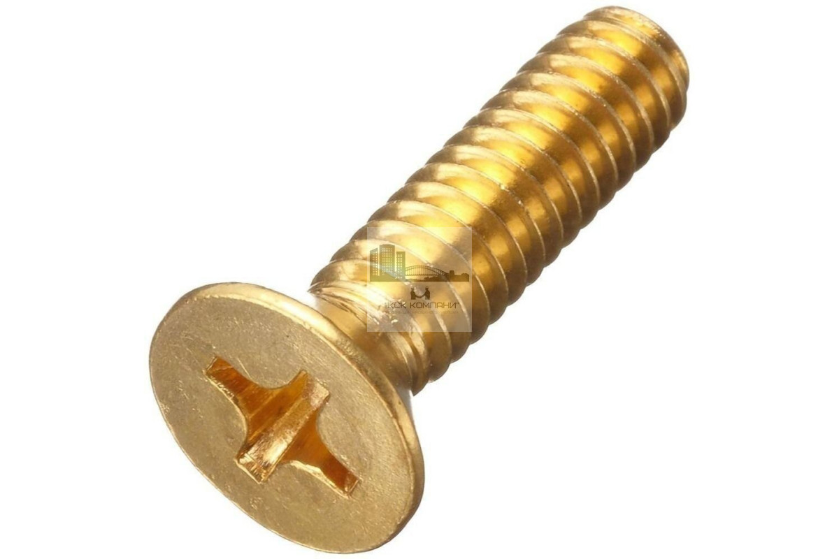 Винт латунный DIN 965 с потайной головкой полной резьбой шлиц Phillips.