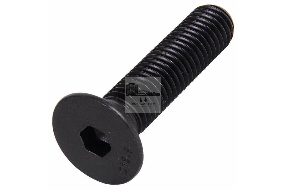 Особенности: Крепеж представляет собой стержень с полной метрической резьбой и потайной головкой, изготавливается с тупым концом. В шляпке метиза есть шестигранник для удобной установки ключом и возможности демонтажа винта при необходимости. Изделие соответствует требованиям DIN 7991. Производится из высокопрочной стали, соответствует классу прочности —10.9. |