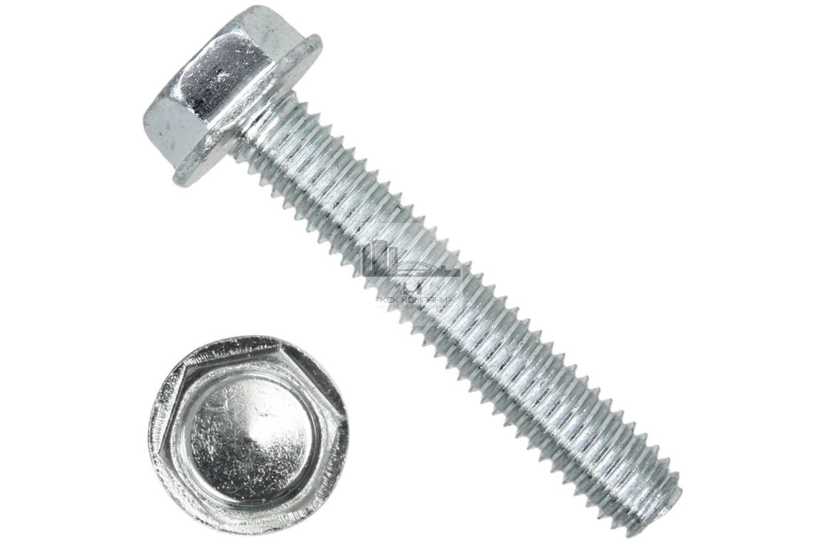 Винт резьбовыдавливающий с фланцем данной формы выпускается с резьбой от М2 до М8, длина стержня может достигать 45 мм. Производится DIN 7500 D из прочной оцинкованной стали, что гарантирует стойкость к коррозии, ржавчине, кислотам.