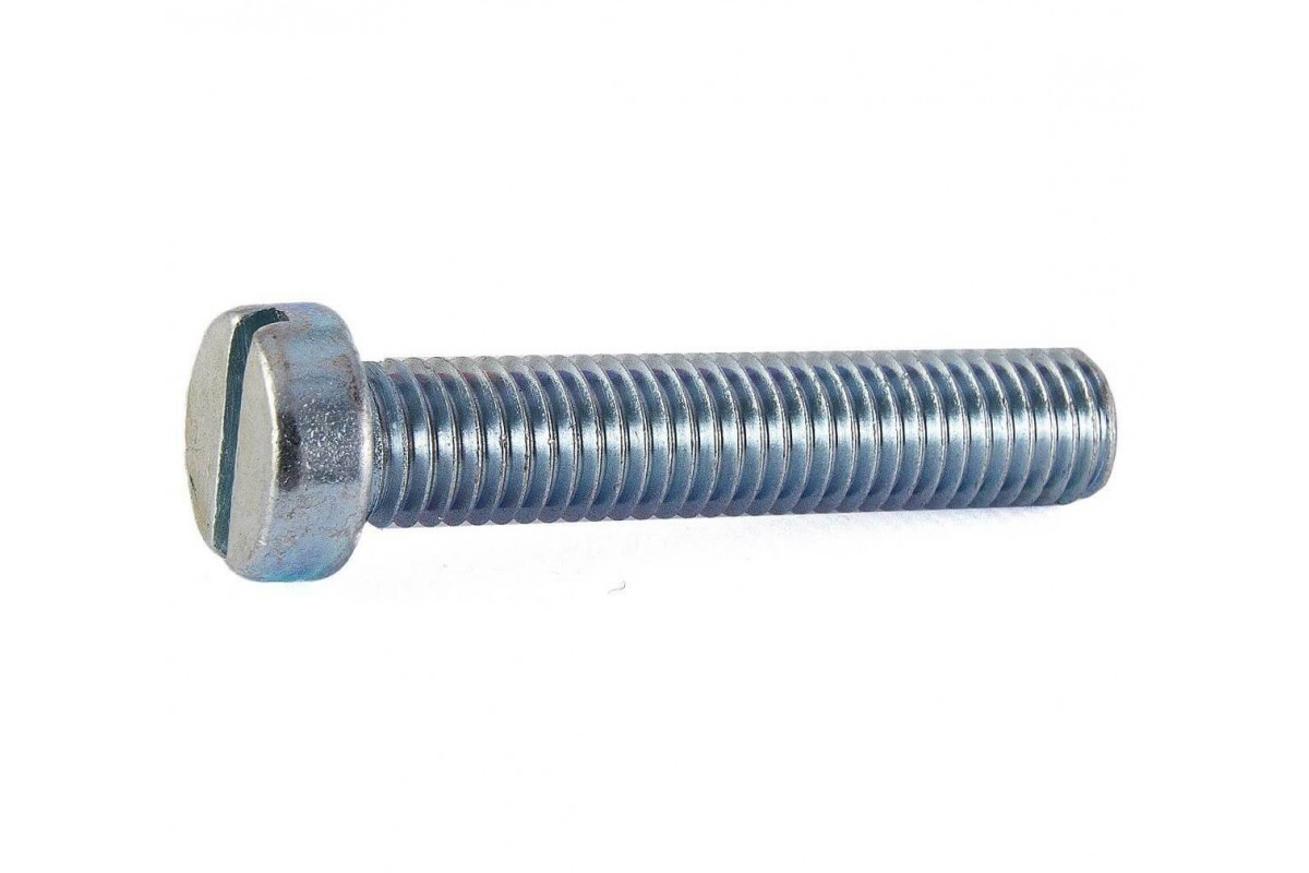 Особенности: Винт с цилиндрической головкой имеет прямой шлиц и полную резьбу. Класс точности А. Чтобы установить данный винт, необходимо обязательно высверлить отверстие с резьбой или без резьбы, если винт планируется использовать с шайбой и гайкой, после винт закручивается с помощью простой отвёртки или биты. Поверхность винта, для защиты от коррозии, имеет гальваническую оцинковку. |