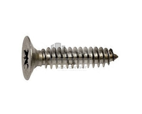 Саморез с потайной головкой DIN 7982 PZ и острым концом из нержавеющей стали А2, шлиц Pozidriv.