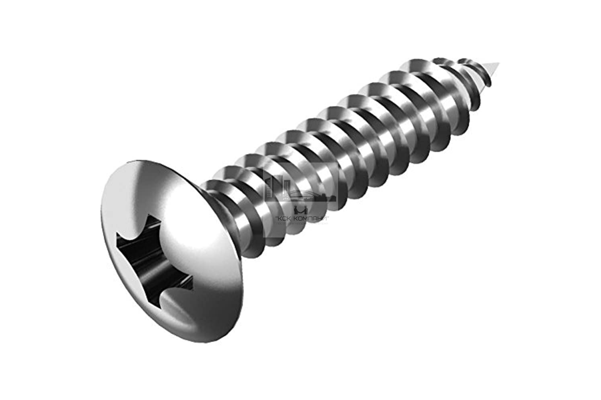 Саморез DIN 7983 AISI 316 – это крепёжный элемент с резьбой по всему периметру стержня и полупотайной головкой. Конец метиза заострённый, что позволяет выполнять монтаж без предварительного сверления стального листа, толщиной до 0,9 мм. На шляпке имеется крестообразный шлиц Phillips, упрощающий работу с электрическим инструментом и отвёрткой.