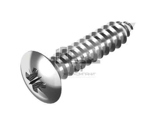 Саморез DIN 7983 AISI 304 – это крепёжный элемент с резьбой по всему периметру стержня и полупотайной головкой. Конец метиза заострённый, что позволяет выполнять монтаж без предварительного сверления стального листа, толщиной до 0,9 мм. На шляпке имеется крестообразный шлиц Pozidriv, упрощающий работу с электрическим инструментом и отвёрткой.